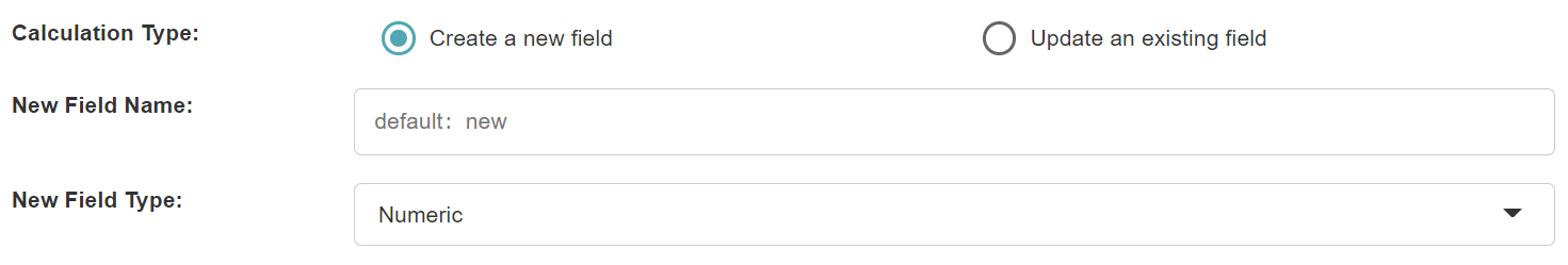 - Calculation Type: you can choose Create a new field or Update an existing field.