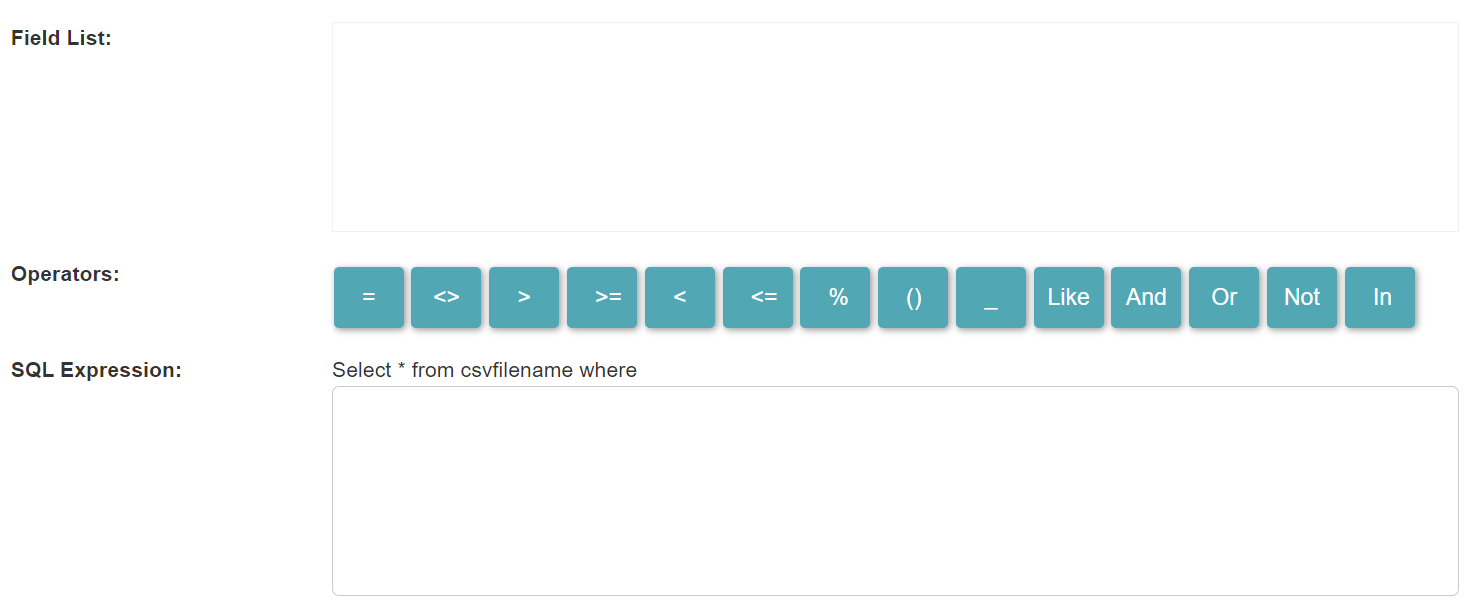- Operators: The list of available operators. You can click on an operator to add it to the expression input area. You can also enter it manually directly in the input area.