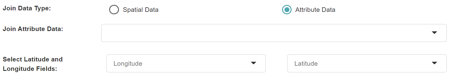 - Longitude and Latitude Fields: When joining attribute data, you need to select longitude and latitude fields for determining the spatial relationship.