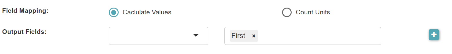- Field Mapping: The field mapping type from the join data to the generated new data, including Calculate Values, Count Units. When you select Calculate Values, you can set the output fields and the merge rules for each field. When you select Count Units, you can select the fields to count the number of units with different values and set the keywords used for matching.